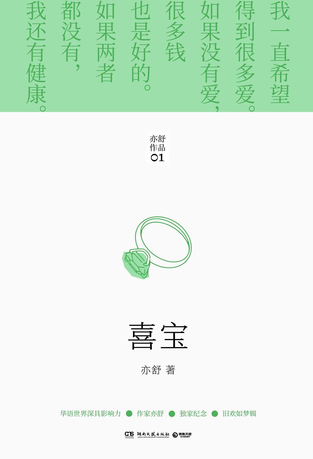 《喜宝》是亦舒最具知名度的里程碑式作品,入选“二十世纪中文小说一百强”。这部小说,不仅仅关于金钱与爱情,更关于人生的虚空与无常,正如喜宝所说,“生活不过是幻象,一切都并不值得”,但我们不要做听天由命的人,“即使兜了一个大圈子回来原处,但花过力气,我死得眼闭”。