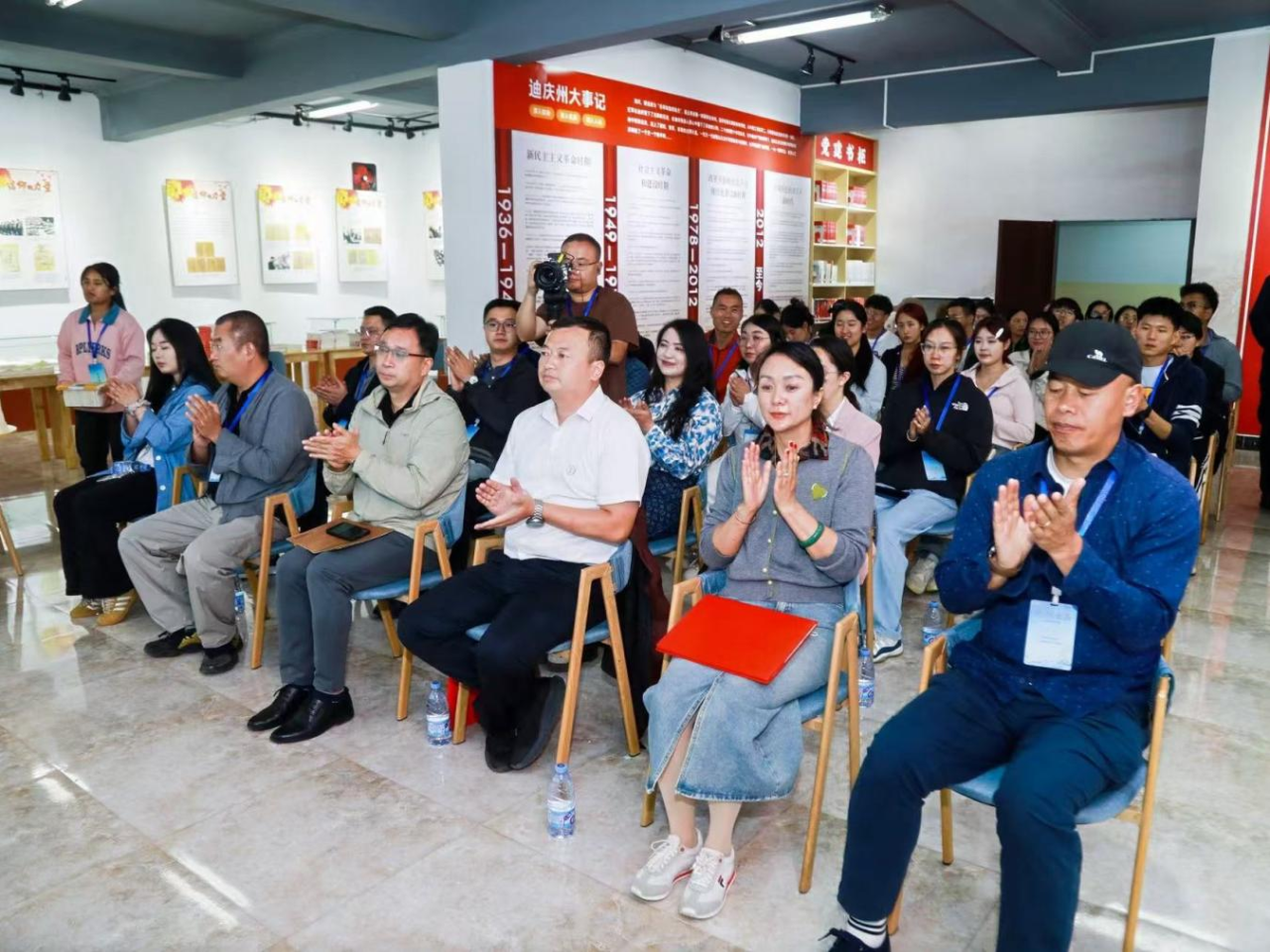 28日晚,本期活动主办方在迪庆州图书馆召开行前动员会。会上,迪庆州文化和旅游局公共服务科科长王桂秀致欢迎辞,云南省图书馆副馆长田景能、云南水利水电职业学院副校长刘世剑作开班讲话,强调了此次活动的重要意义、主要内容、具体要求。省图书馆还通过向州图书馆、博物馆和参加活动的学习组赠阅地方文献的方式,引导同学和读者深入了解迪庆当地历史文化、红色文化、民族文化。