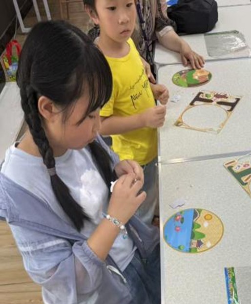 手工创作环节时,孩子们在家长的协助下,化身“小小艺术家”,将对古诗词中昆虫的理解融入创作:选图时斟酌昆虫的灵动姿态,配色时呼应诗句的意境氛围,小心翼翼地将蝴蝶、蜻蜓等 “小客人” 粘贴在荷叶布景上,让“小荷才露尖尖角”的画面在指尖绽放出新的生命力。这不仅是对昆虫知识的巩固,更是对想象力与创造力的绝佳锻炼。互动问答环节则掀起了活动的另一波高潮,小读者们踊跃上台,自信地背诵与昆虫相关的古诗词。从“穿花蛱蝶深深见”到“点水蜻蜓款款飞”,稚嫩童声满是求知热忱,答对领奖时的笑容比盛夏阳光更灿烂。活动中,云南省图书馆工作人员还向家长们详细介绍了本馆丰富的数字资源特别是“云图数字有声图书馆”的特色资源与服务,让大家切身感受到“有声阅读”带来的魅力与便捷。