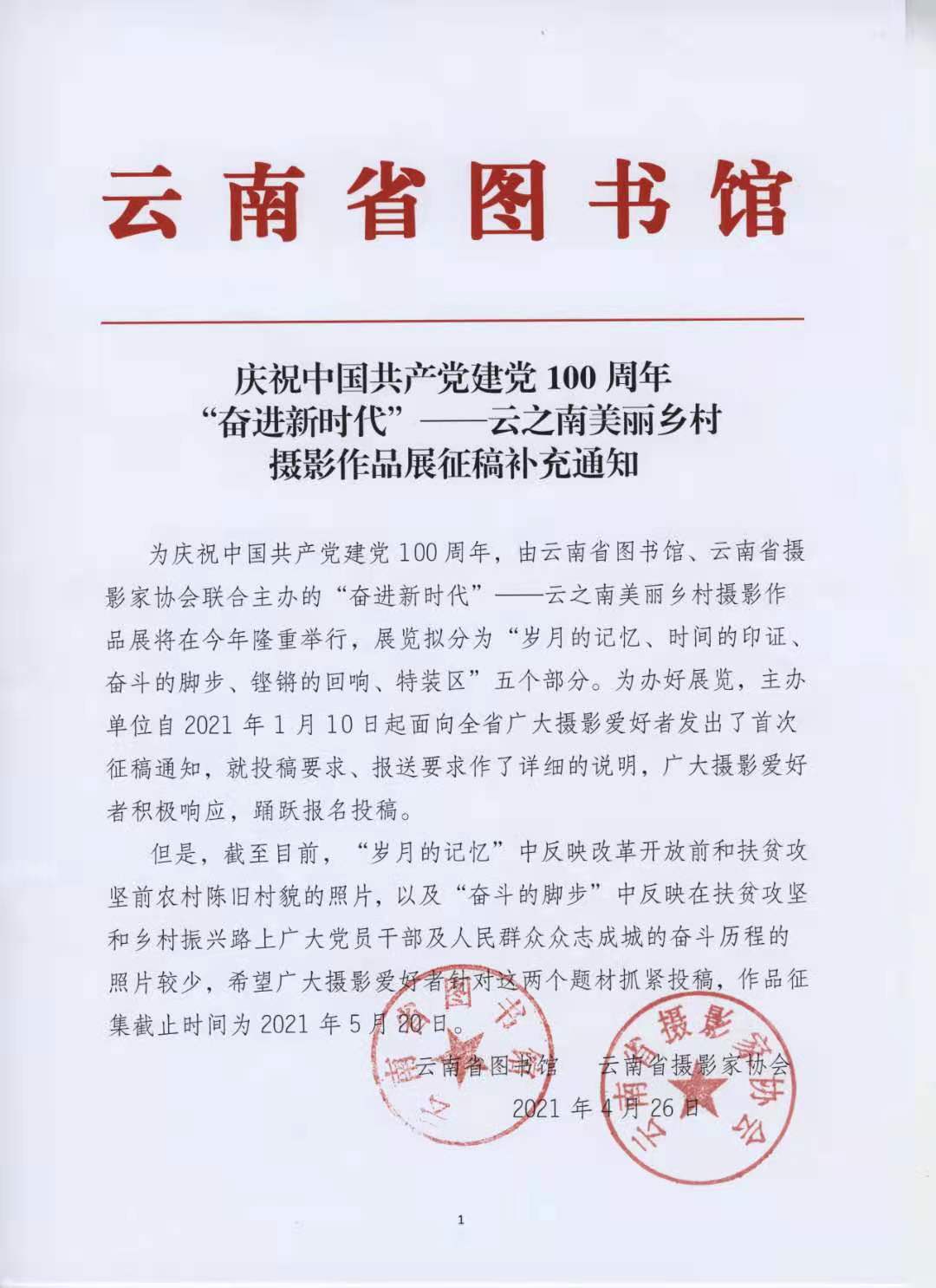 庆祝中国共产党建党100周年“奋进新时代”云之南美丽乡村摄影作品展征稿补充通知