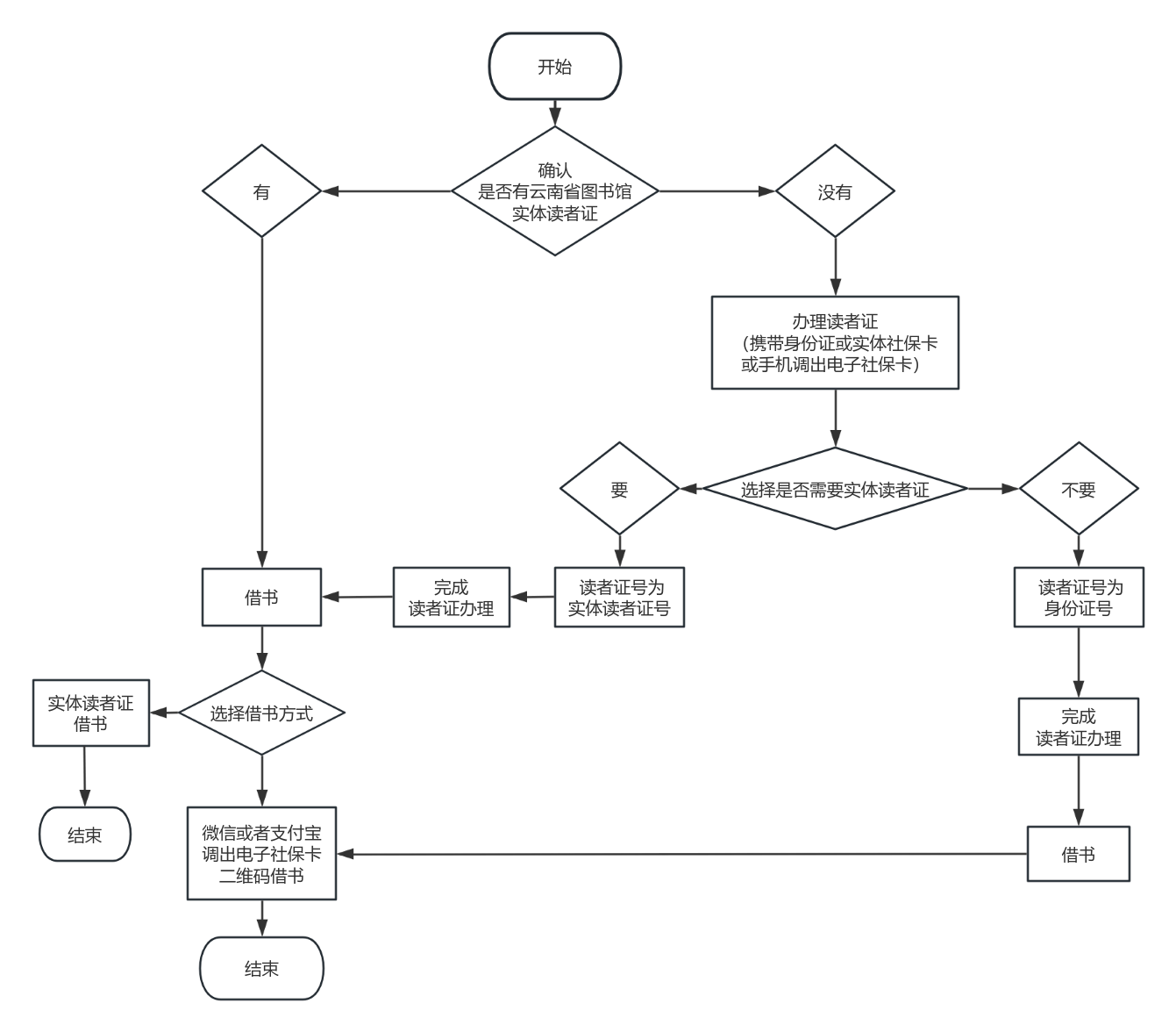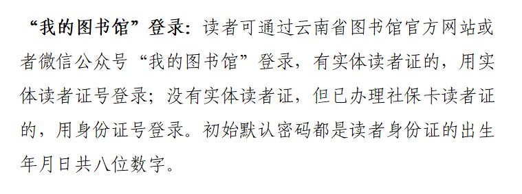 在新年来临之际,为满足人民精神文化生活新期待,适应广大读者多元化、便捷化的公共文化服务新需求,依据云南省社保卡“一卡通”相关服务要求,云南省图书馆现已开通社保卡办理读者证服务。即日起,读者可到云南省图书馆二楼办证处,向工作人员出示社保卡办理完读者证后,持电子社保卡二维码到相关阅览室借还图书。已办有云南省图书馆读者证的,可直接用电子社保卡二维码借还图书。