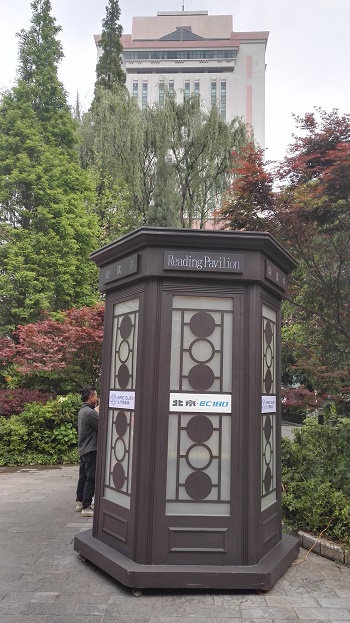 据工作人员介绍,4月14日朗读亭正式进驻云南省图书馆,位于正大门,预计在此5天。具体开放时间分三个时段:上午9:00~11:30;中午12:30~13:30;下午15:30~20:00。