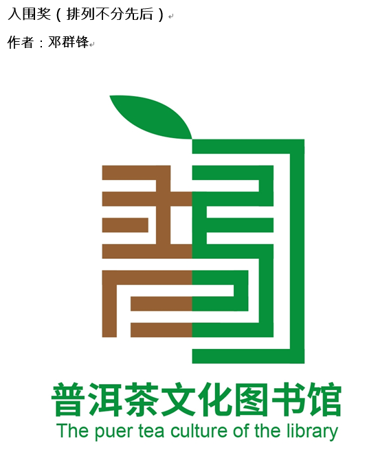云南省图书馆“普洱茶文化图书馆”标识(LOGO) 设计比赛获奖作品公告 来源:本站原创 发布时间:2018-07-30 16:23:00 浏览次数: 次 【字体:小 大】 自2018年4月28日云南省图书馆在本馆官方网站和微信公众号上发布“普洱茶文化图书馆”标识(LOGO)设计比赛通告以来,在征集时间内共收到来自全国各地的170余个设计方案。经云南省图书馆组织的评审组评审,产生优胜奖一名、入围奖五名,现进行公布。如对获奖作品著作权有异议者,请于2018年7月30日至8月3日向“普洱茶文化图书馆”反映。联系电话:0871-65320554。 云南省图书馆 2018年7月30日 相关内容 分享到: 【打印正文】